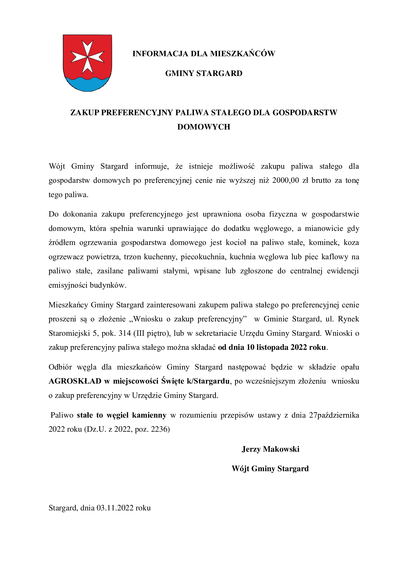 ZAKUP PREFERENCYJNY PALIWA STAŁEGO DLA GOSPODARSTW DOMOWYCH